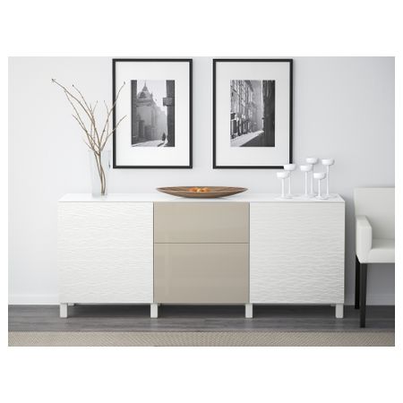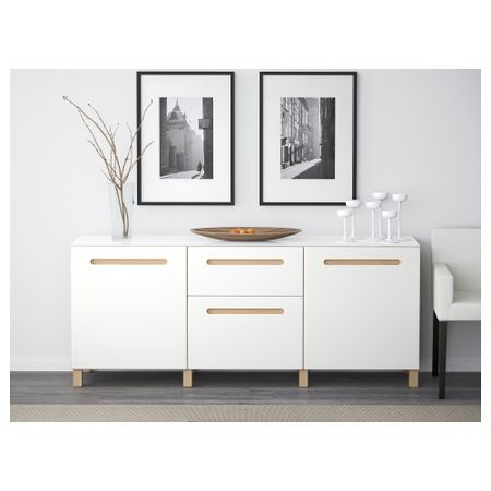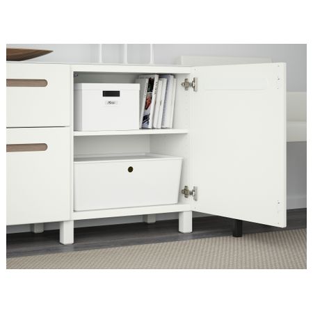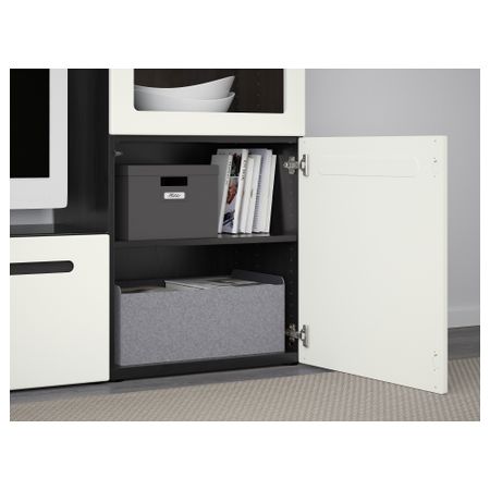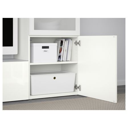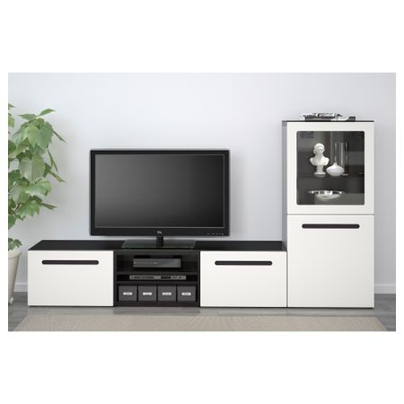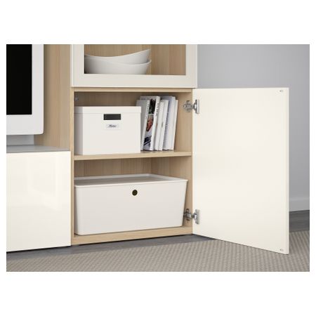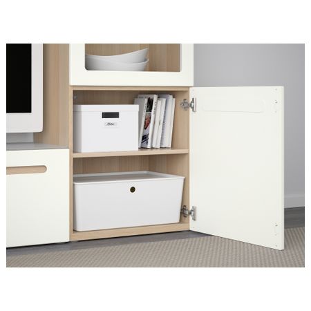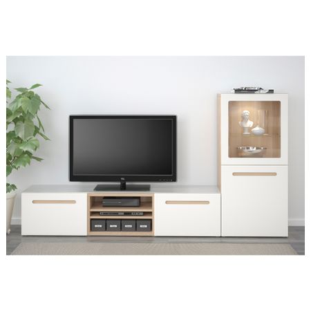 Шкаф для ТВ, комбинированный, стекляные дверцы БЕСТО, под беленый дуб, Марвикен белый прозрачное стекло (240x40x128 см)