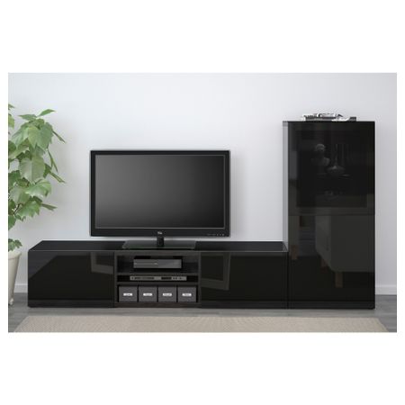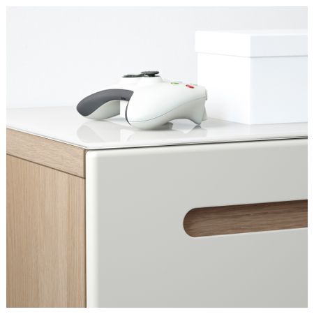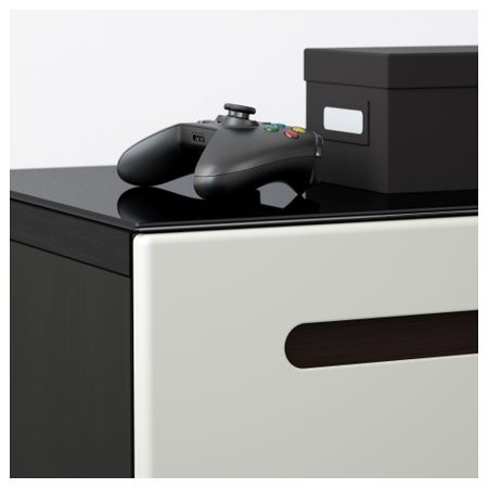 Благодаря доводчикам ящики и дверцы закрываются плавно и бесшумно. Панель из закаленного стекла защищает верхнюю панель тумбы под ТВ и делает ее стильной. Размер: 240x40x128 см