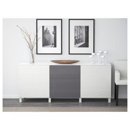 БЕСТО 091.294.14 Комбинация для хранения с дверцами, ящиками , Лаксвикен белый, Сельсвикен глянцевый/бежевый (180x40x74 см)