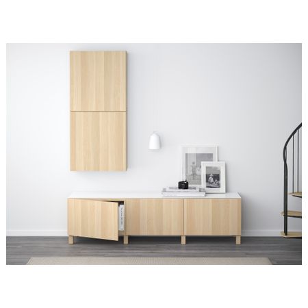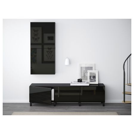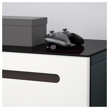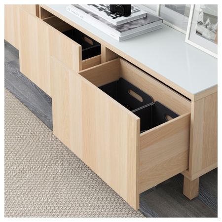 Благодаря доводчикам ящики закрываются плавно и бесшумно Закаленное стекло защищает верхнюю панель стеллажа БЕСТО и придает ему новый облик. Эту мебель необходимо крепить к стене с помощью прилагаемого стенного крепежа. Размер: 180x40x48 см