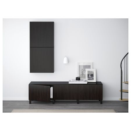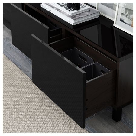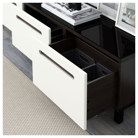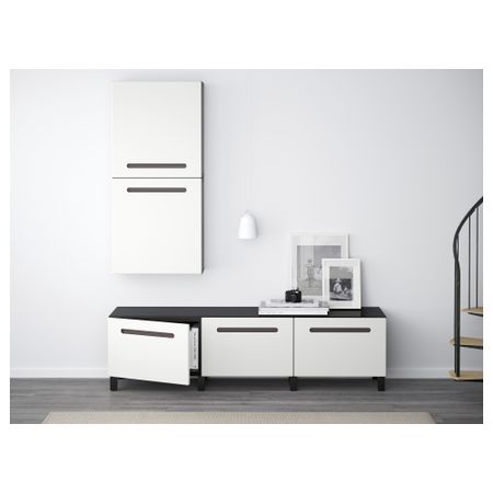 БЕСТО 491.031.48 Комбинация для хранения с ящиками БЕСТО, черно-коричневый, Марвикен белый (180x40x48 см)