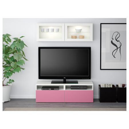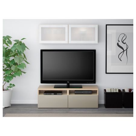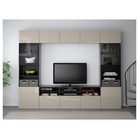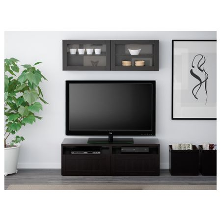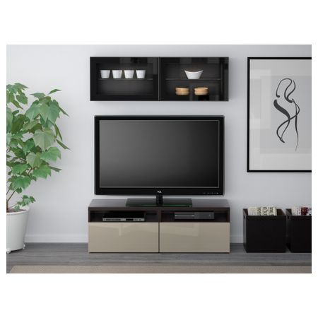 БЕСТО 790.859.54 Шкаф для ТВ, комбинированный, стекляные дверцы , черно-коричневый, Сельсвикен глянцевый/черный дымчатое стекло (300x40x230