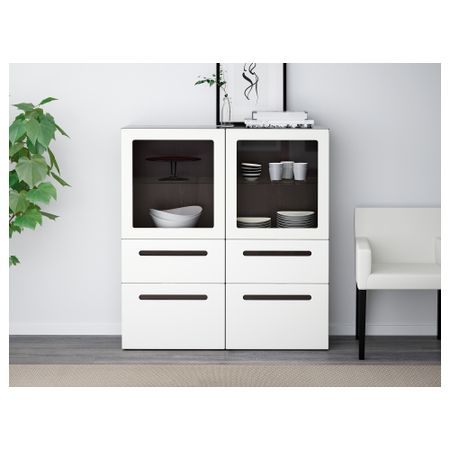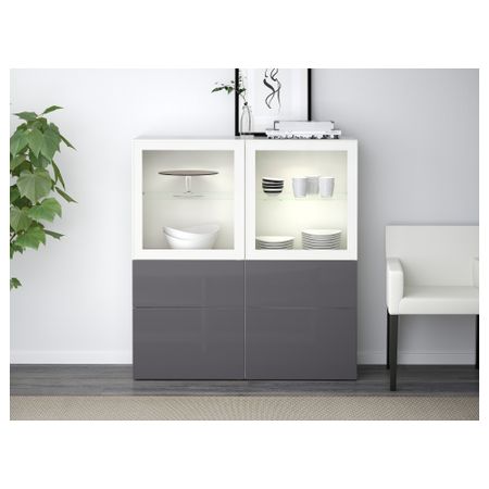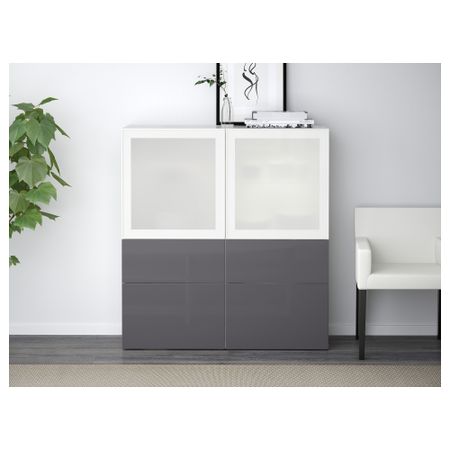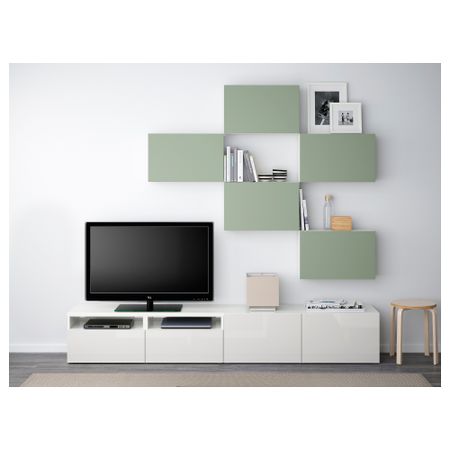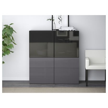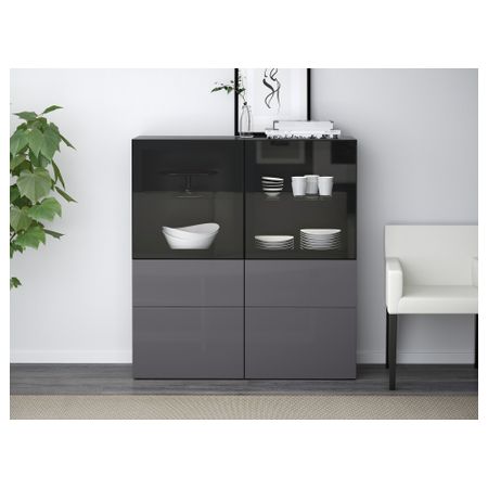 БЕСТО 490.731.27 Шкаф для ТВ, комбинация , черно-коричневый, Сельсвикен глянцевый/серый (240x20/40x204 см)