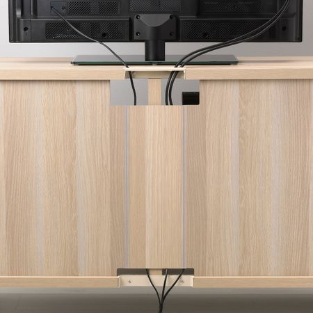 Благодаря нескольким отверстиям на задней панели тумбы под ТВ провода от телевизора и других устройств всегда будут под рукой, но не на виду. Специальное отверстие в верхней панели обеспечит удобное и компактное размещение проводов. Размер: 120x40x48 см