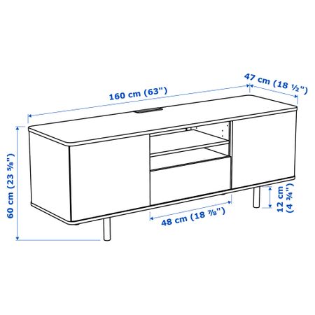 Благодаря интегрированному нажимному механизму ящики открываются легким нажатием. Благодаря нескольким отверстиям на задней панели тумбы под ТВ провода от телевизора и других устройств всегда будут под рукой, но не на виду. Размер: 180x40x48 см