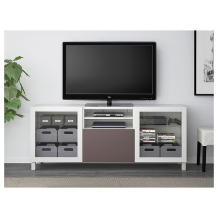 БЕСТО 091.938.91 Тумба для ТВ с ящиками, под беленый дуб, Вальвикен серо-бирюзовый (120x40x74 см)