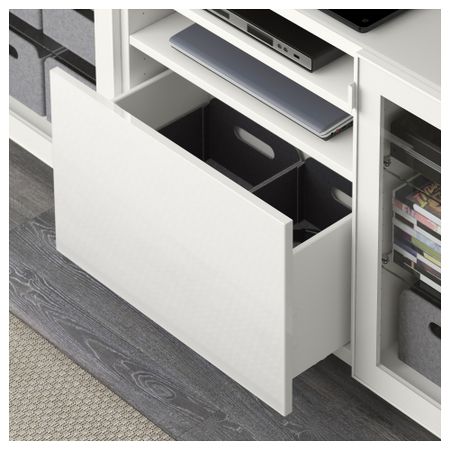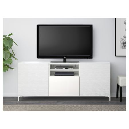 ТВ БЕСТО 291.968.36 Тумба под, белый, Сельсвикен глянцевый/белый прозрачное стекло (180x40x74 см)
