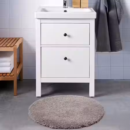 Современный стиль мебели для ванной ЭНГШЁН подчеркивается интегрированными ручками и лаконичным дизайном.