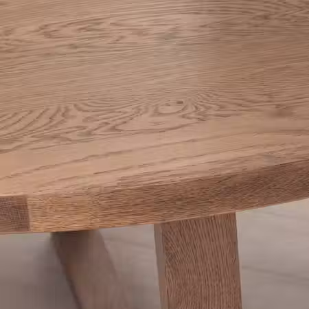 Столешница из дубового шпона и каркас «ласточкин хвост» придают столу прочность и напоминают изделия ручной работы.