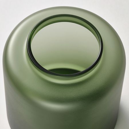 Эта ваза из матового стекла цвета мха обладает гармоничной выразительностью и будет прекрасно смотреться с простой веточкой.