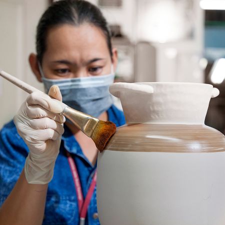 В вазу можно ставить цветы или использовать ее без цветов как аксессуар для оформления интерьера.Вазу также можно использовать как кашпо . Диаметр: 21 смВысота: 17 см. Каменная керамика, Цветная глазурь