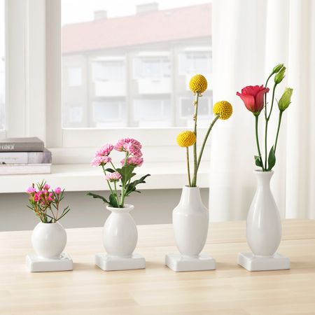 Четыре варианта высоты для разных цветов.В вазу можно ставить цветы или использовать ее без цветов как аксессуар для оформления интерьера.В набор входит: 1 ваза (высота 7 см), 1 ваза (высота 9 см), 1 ваза ( высота 12 см) и 1 ваза (высота 14 см).