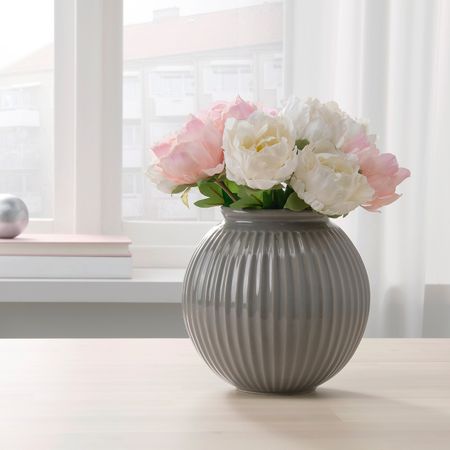 Эта ваза прекрасно подойдет для тюльпанов и других цветов с коротким стеблем. Высота: 18 смДиаметр: 18.5 см. Каменная керамика, Цветная глазурь