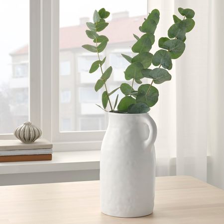 Вазу такой формы легко поднимать, переносить и мыть, ее плавные изгибы не повредят стебли срезанных цветов.В вазу можно ставить цветы или использовать ее без цветов как аксессуар для оформления интерьера.