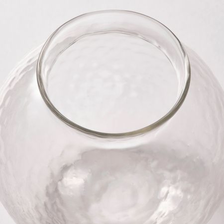 В прозрачной стеклянной вазе с рельефной мерцающей поверхностью будет прекрасно смотреться небольшой букетик цветов.