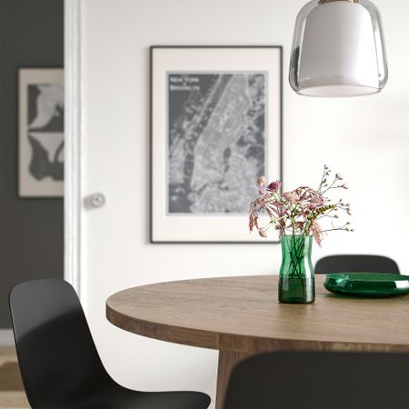 Эта ваза из матового стекла цвета мха обладает гармоничной выразительностью и будет прекрасно смотреться с простой веточкой.