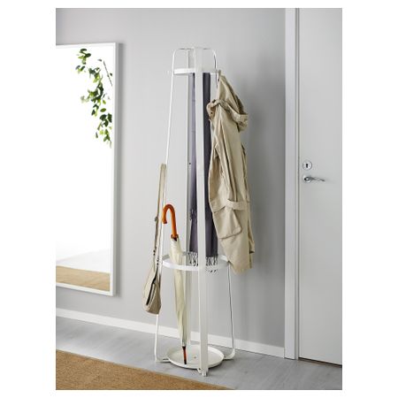 В нижней части вешалки можно хранить зонтики. Пластиковые ножки под основанием обеспечивают устойчивость и защищают пол от повреждений. Сочетается с другими товарами серии ЭНУДДЭН. Диаметр: 45 см. Высота: 170 см. Размер: 170 см