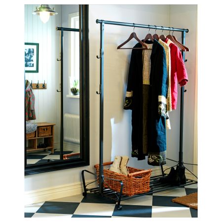Чтобы пальто и куртки не деформировались, повесьте их на плечиках на платяную штангу. С 6 крючками для сумок, шарфов, курток, поводков для собаки и других вещей, которые удобно держать под рукой.