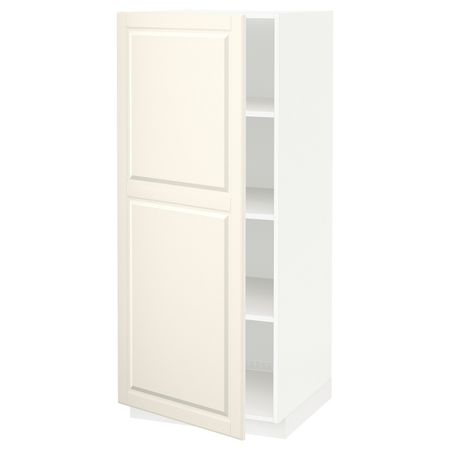 Высокий шкаф с полками, 2 дверцы, белый/кальхюттан под темно-серый бетон 60x60x220 см IKEA METOD МЕТОД