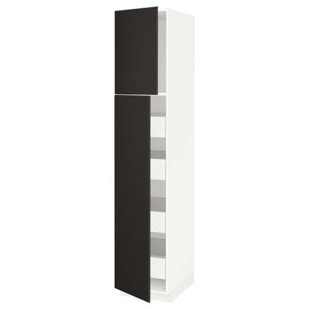 Высокий шкаф/2дверцы/4ящика, черный/Кунгсбакка антрацит 40x60x220 см IKEA МЕТОД / ФОРВАРА