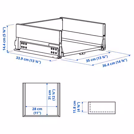 Полностью выдвигающийся ящик с плавным ходом, нажимным механизмом и доводчиками, обеспечивающими медленное, плавное и бесшумное закрывание. Нажмите, чтобы открыть; ручки не требуются.