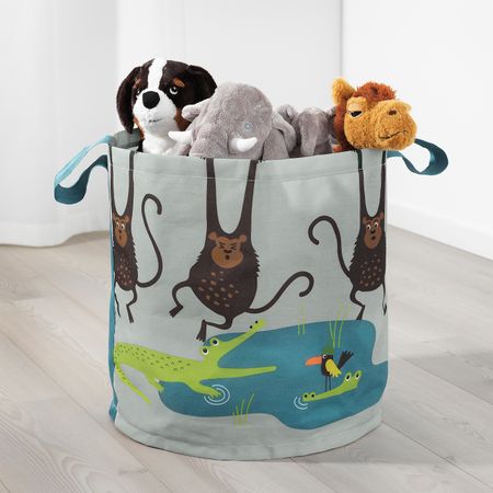 В этой корзине можно хранить игрушки или одежду.Крышка фиксируется застежкой-липучкой – легко открывать и закрывать даже для маленького ребенка.В сложенном виде занимает мало места. Высота: 49 смДиаметр: 35 см. 100% полиэстер