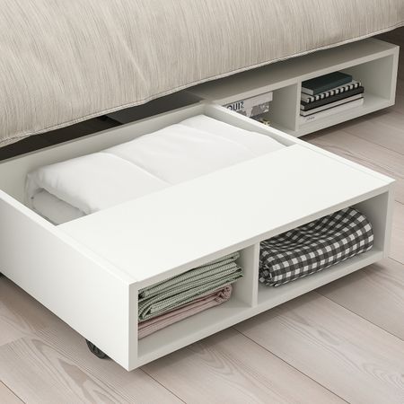 Ящики СОНГЕСАНД подходят для каркаса кровати этой серии.Превращают пустующее пространство под кроватью в эффективное решение для хранения одеял, подушек и постельного белья.