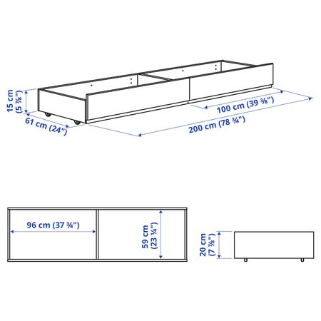 Ящики МАЛЬМ подходят для каркаса кровати этой серии.Превращают пустующее пространство под кроватью в эффективное решение для хранения одеял, подушек и постельного белья.Благодаря колесикам ящики легко выдвигать и задвигать.