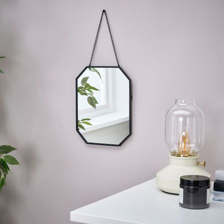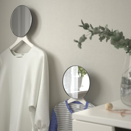 Можно использовать в любом помещении дома — в ванной, прихожей или спальне. Зеркало на стене придает помещению глубину и делает интерьер более динамичным. На полке и крючках можно хранить мелкие вещи и украшения.