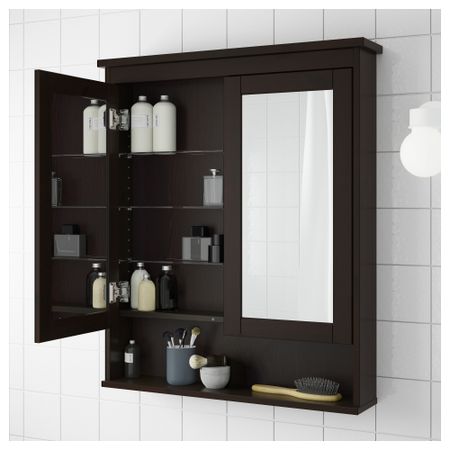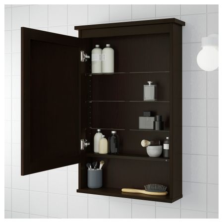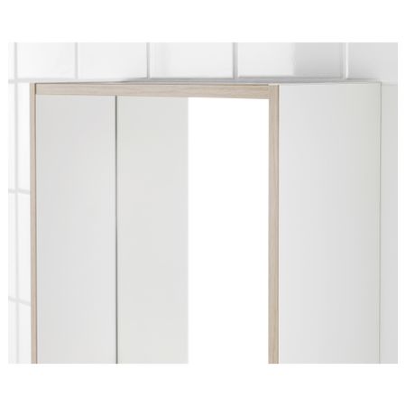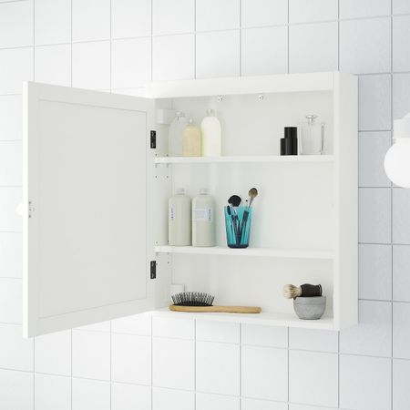 Полки можно установить в соответствии с потребностями хранения.Зеркало снабжено защитной пленкой с обратной стороны. Это снижает опасность получения травм, если стекло разобьется.1 несъемная и 4 съемные полки прилагаются.Ручка прилагается.