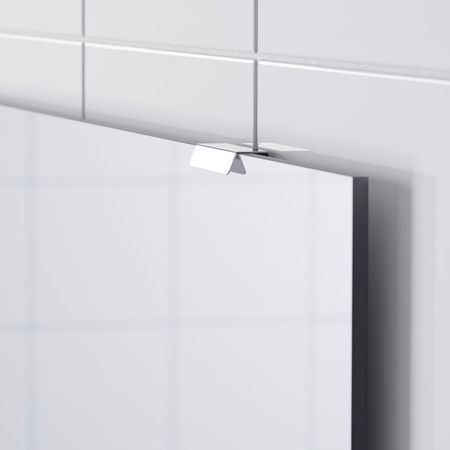 Крепления регулируются по глубине, оставляя место для проводов. Зеркало снабжено защитной пленкой с обратной стороны. Это снижает опасность получения травм, если стекло разобьется. Протестировано и одобрено для использования в ванной.