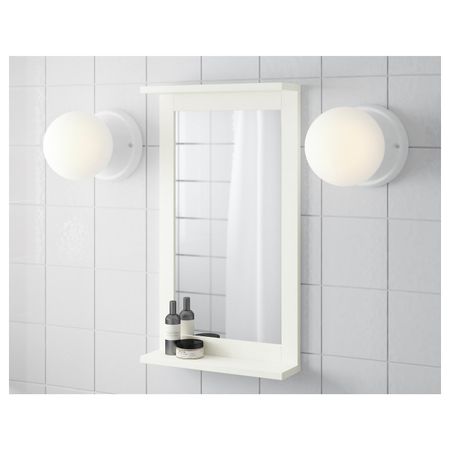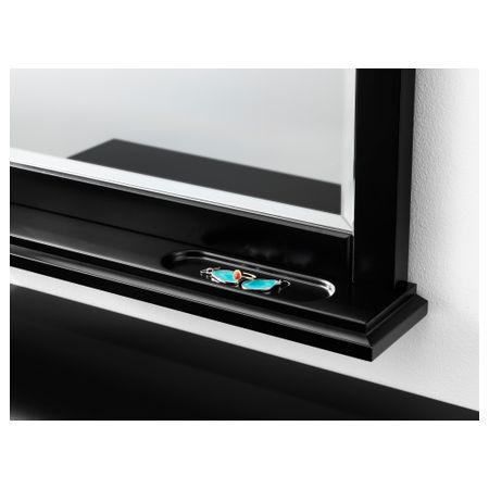 Зеркало снабжено защитной пленкой с обратной стороны. Это снижает опасность получения травм, если стекло разобьется.Открытые полки удобны для хранения парфюмерных и косметических средств или других предметов, которыми вы часто пользуетесь.