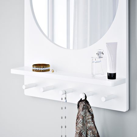 На крючки можно повесить украшения, а на полочку положить косметику и солнечные очки.Подходит для использования в большинстве помещений. Протестировано и одобрено для использования в ванной.