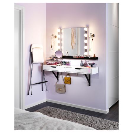 Специальная пленка защитит от осколков, если стекло разобьется. Массив дерева – прочный натуральный материал. Можно использовать в помещениях с повышенной влажностью. Хорошо сочетается с мебелью для спальни серии ГУРДАЛЬ. Крепеж прилагается. Размер: 50x160 см