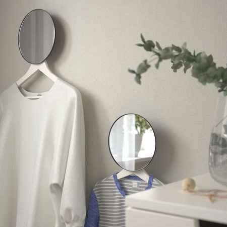 На крепление с обратной стороны зеркала можно повесить плечики с одеждой.Идеально подходит для плечиков БУМЕРАНГ.Можно использовать в любом помещении дома — в ванной, прихожей или спальне.Макс. нагрузка: 6 кг.