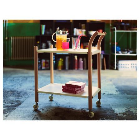 Этот стол можно использовать как угодно – как рабочую станцию, журнальный столик, кухонный островок и даже как прикроватную тумбу. Удобно перемещать благодаря ручке на комфортной высоте и колесикам. 2 несъемные полки для большей устойчивости. Размер: 69x40 см
