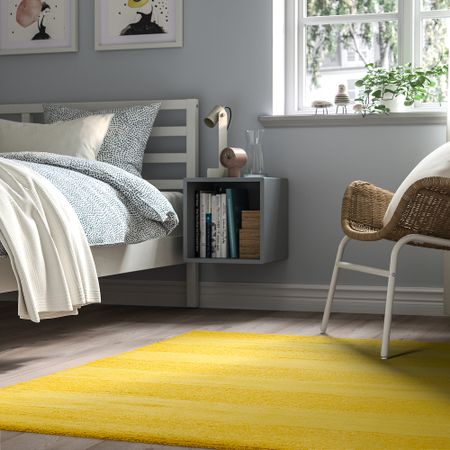 У этого ковра густой мягкий ворс, по которому очень приятно ходить, а ещё на нём здорово сидеть, играть и просто лежать. К тому же он приглушает звуки — идеальный вариант для создания более спокойной атмосферы в