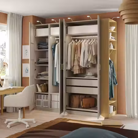 В этом гардеробе найдется отделение для всего на свете. Он подходит для тех, кто привык точно знать, где лежит каждая вещь независимо от ее размера, и при этом сохранять хороший обзор. Демонстрируйте свой идеальный порядок всем