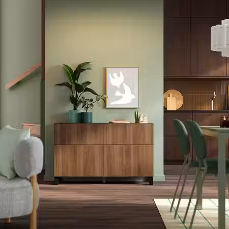 Можно использовать в спальне или любой другой комнате, как самостоятельный предмет мебели или в сочетании с другими товарами из серии ХАУГА. В эту широкую комбинацию поместится много вещей, а на столешницу можно поставить лампу или предметы