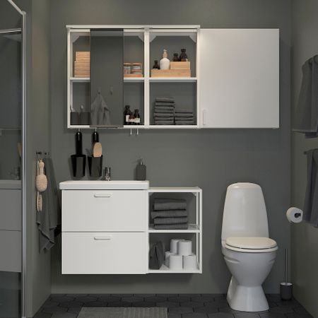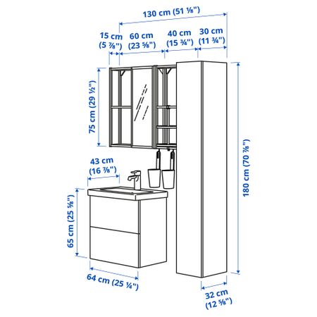 Мебель для ванной, 18 предмета, 140x43x65 cm IKEA TVÄLLEN ЛЕН ТВЭЛЛЕН, BEGIVENHET БЕГИВЕНХЕТ