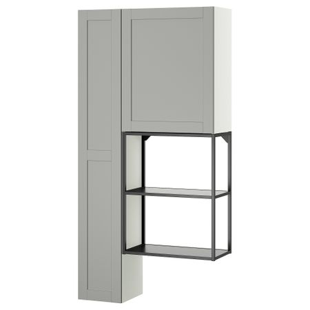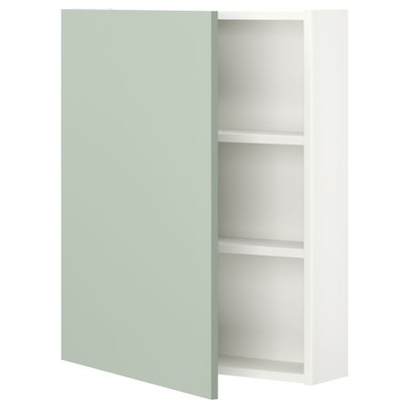Навесной шкаф с 2 полками, дверцей, белый, бледный серо-зеленый, 60x17x75 см IKEA BEGIVENHET БЕГИВЕНХЕТ