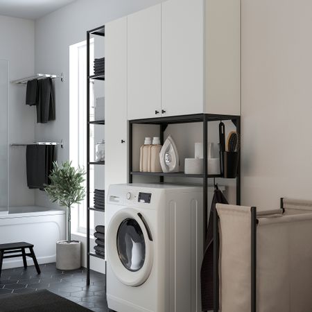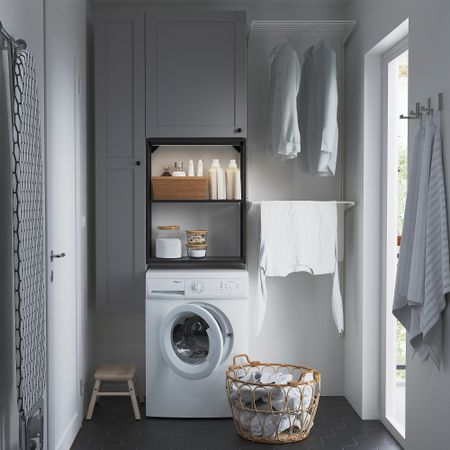 Навесной шкаф с двумя полками, в котором бутылки, банки и другие часто используемые предметы всегда будут под рукой. Уникальные клиновые дюбели упрощают сборку, при этом соединения практически невидимы.