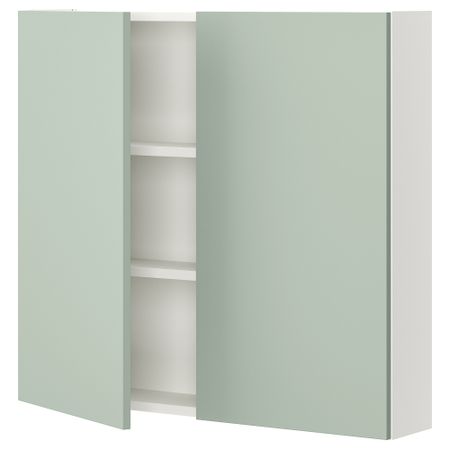 Навесной шкаф с двумя полками, в котором бутылки, банки и другие часто используемые предметы всегда будут под рукой. Уникальные клиновые дюбели упрощают сборку, при этом соединения практически невидимы.