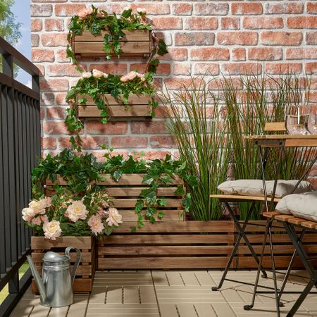 Вы можете поставить один цветочный ящик таким образом, чтобы он опирался на два стоящих под ним, и ваш домашний зеленый уголок получится двухуровневым. Также можно повесить на стену с помощью прилагающихся крючков.