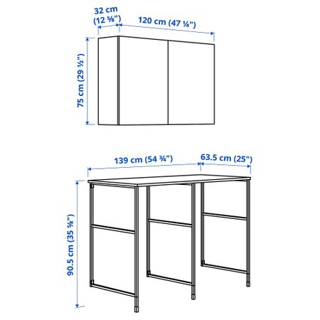 Эта практичная комбинация состоит из рабочей зоны, пространства для хранения под столешницей и закрытыми решениями для хранения вверху для всего того, что вы хотели бы спрятать.