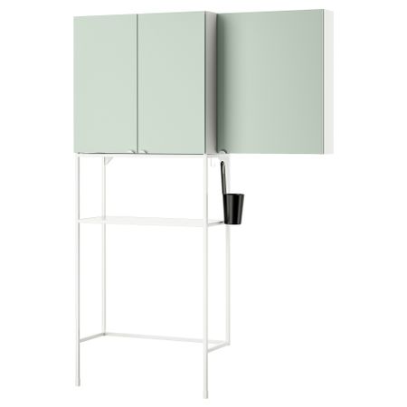 Комбинация для хранения, белый, бледный серо-зеленый, 140x32x204 см IKEA BEGIVENHET БЕГИВЕНХЕТ