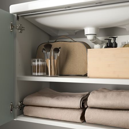 Эта комбинация предлагает удобный доступ к часто используемым вещам и закрытое хранение для мелких предметов. Базовый шкаф удобен для более крупных и объемных предметов.
