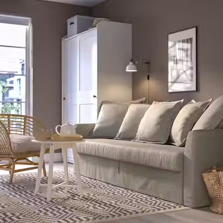 На мягком, комфортном диване ГРЁНЛИД так приятно полностью расслабиться. Уровень комфорта еще выше благодаря глубоким сиденьям с пружинами карманного типа, наполнителем из пенополиуретана и верхним слоем из волокон полиэстера.