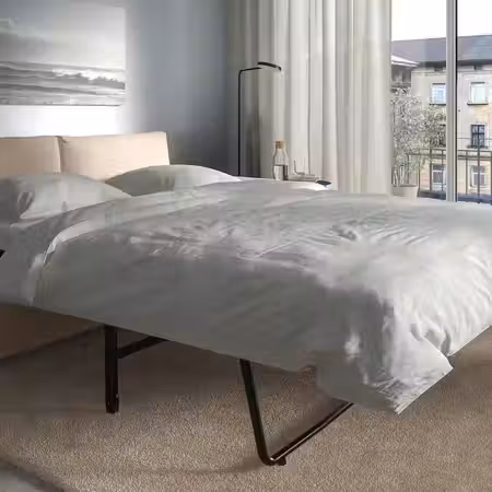 Этот диван легко раскладывается в кровать и превращает гостиную в спальню.
