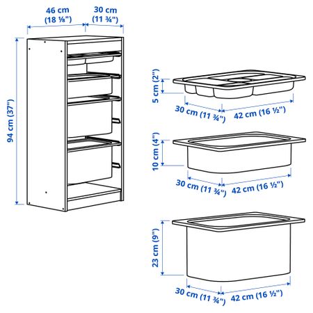 Настенный модуль для хранения, серый, темно-серый, 99x21x30 см IKEA TROFAST ТРУФАСТ